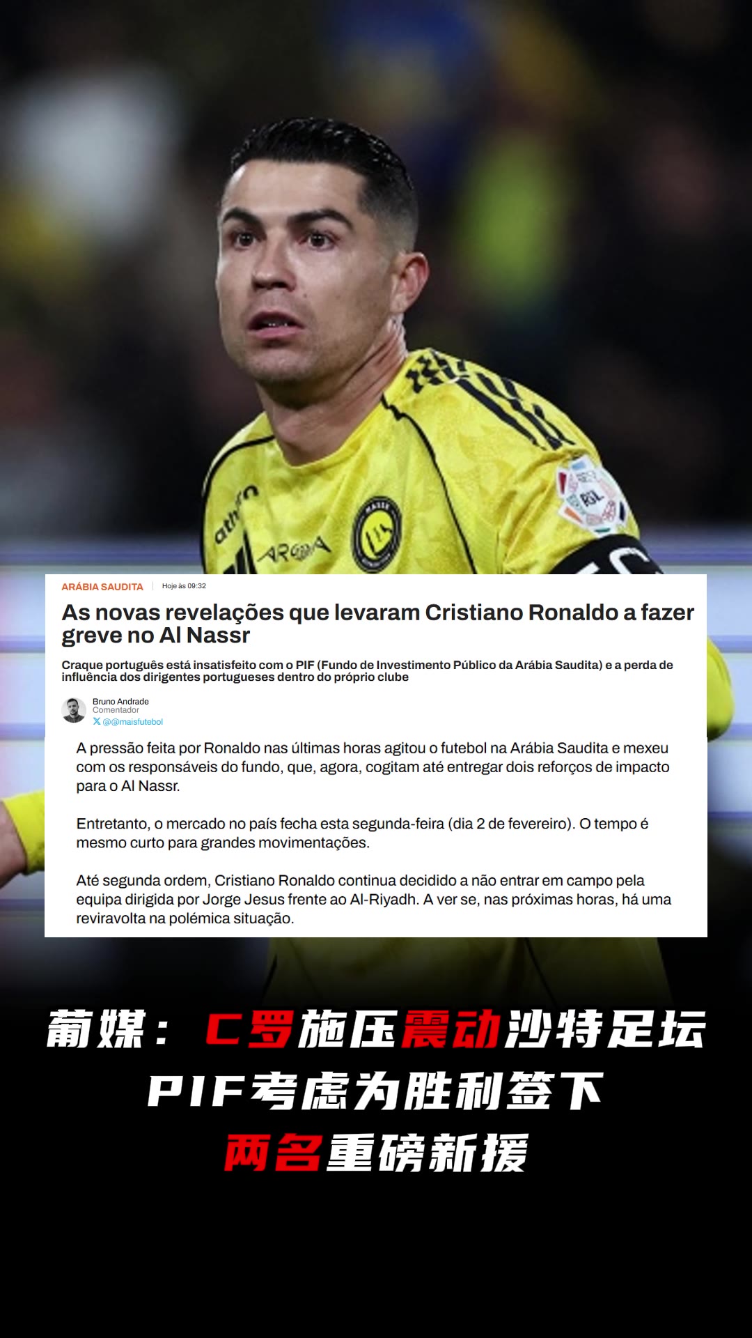 >葡媒:C罗施压激起沙特足坛动荡,PIF考虑签下两名知名球员