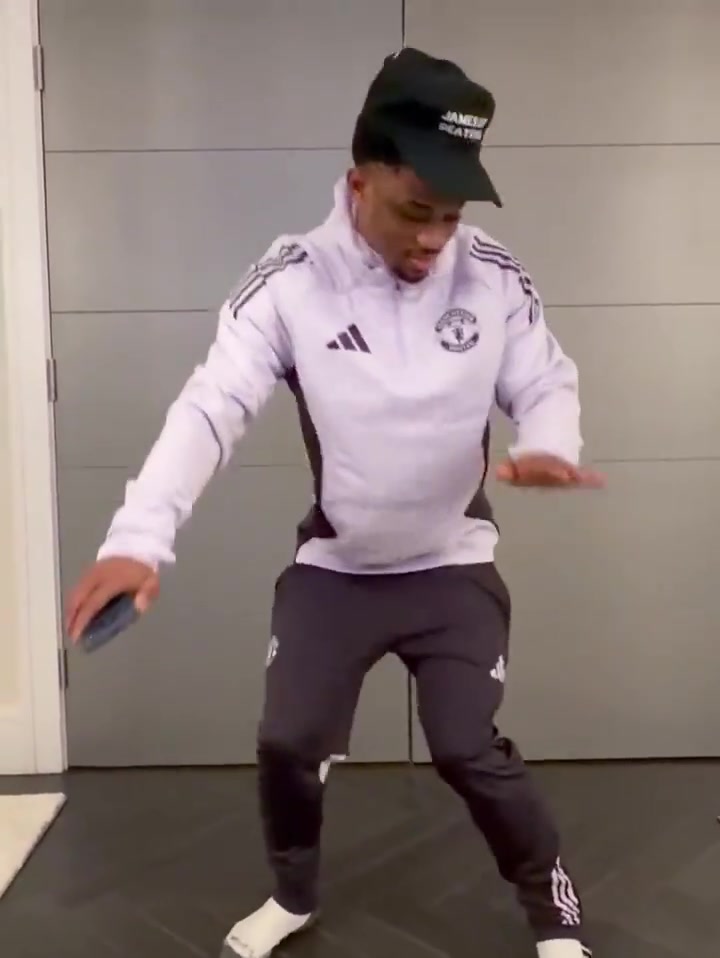 曼联3-2战胜富勒姆后,阿玛德在更衣室跳舞庆祝